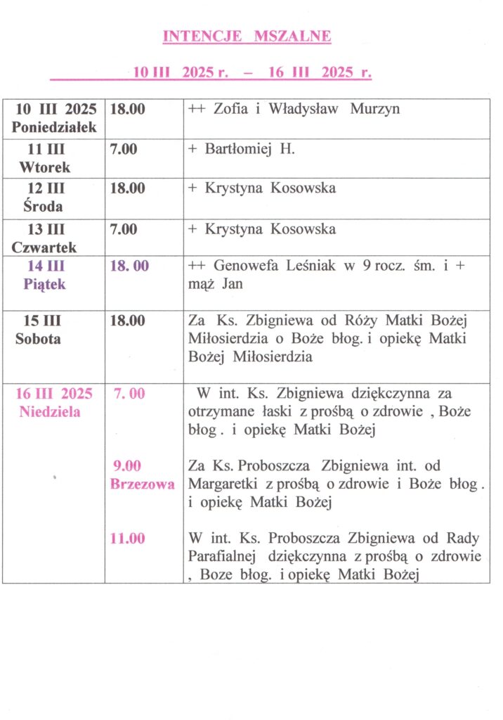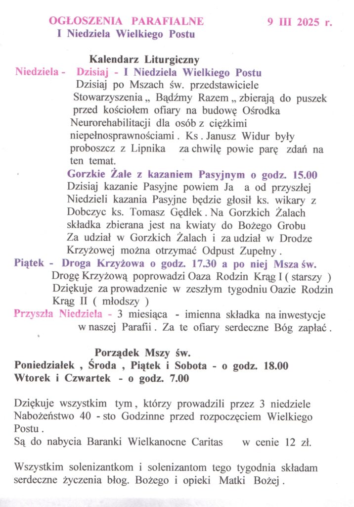 Aktualności Msze Święte Kancelaria parafialna