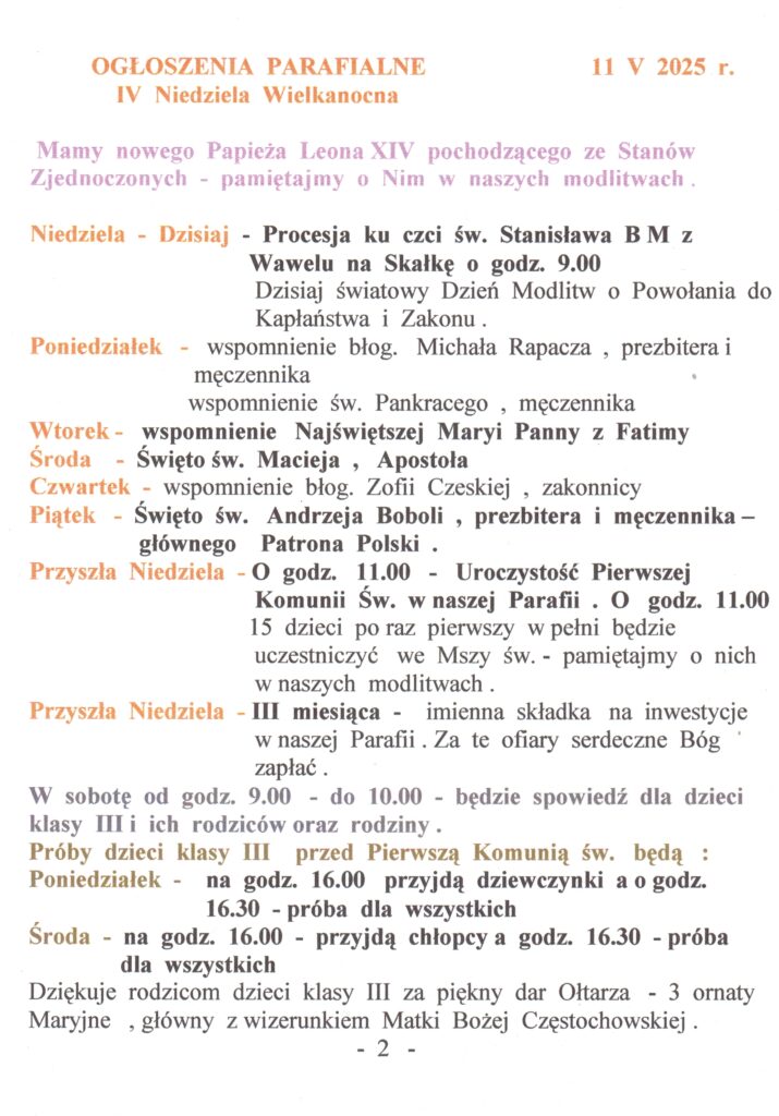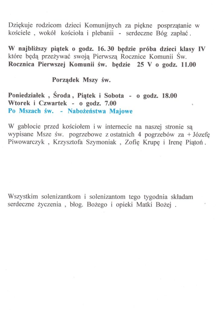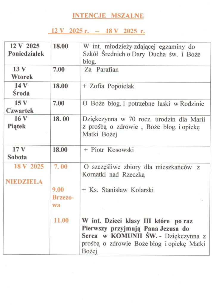 Aktualności Msze Święte Kancelaria parafialna